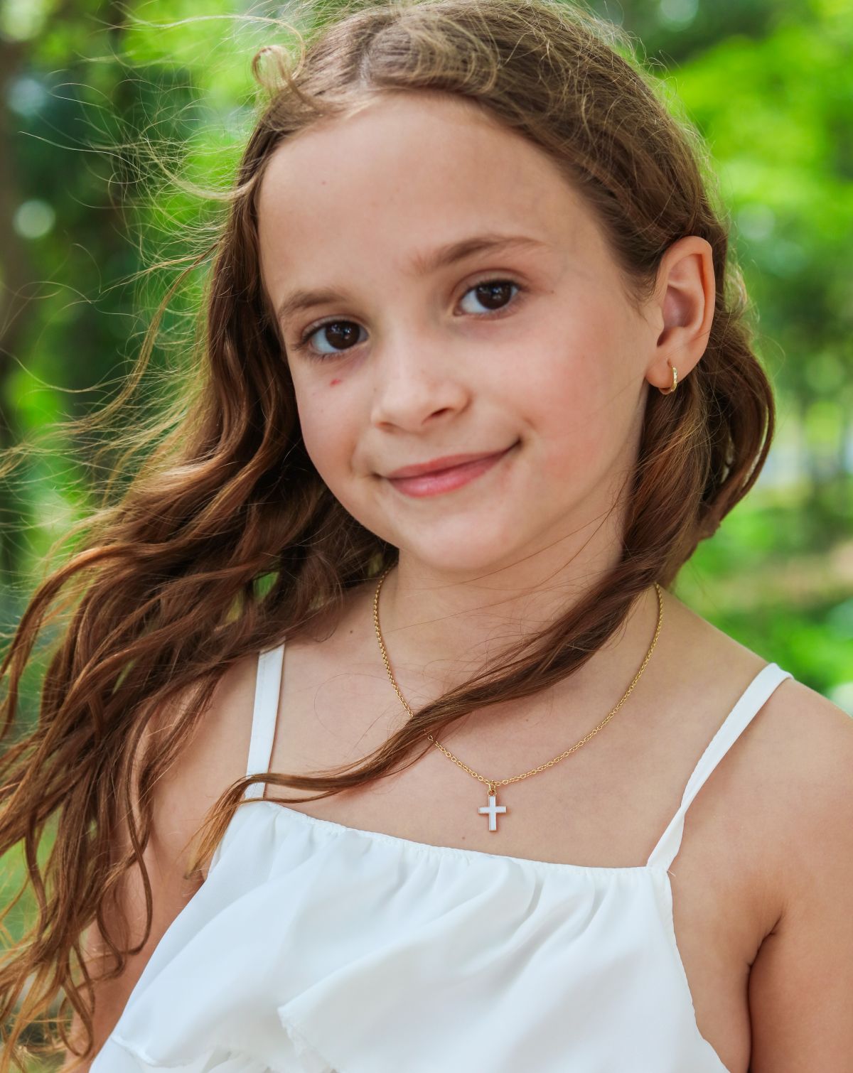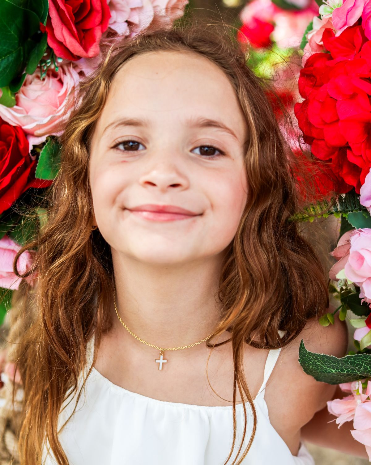 Such a unique, pretty gold cross. I love how it stands out when I wear darker tops. Easy to layer with other necklaces, too.