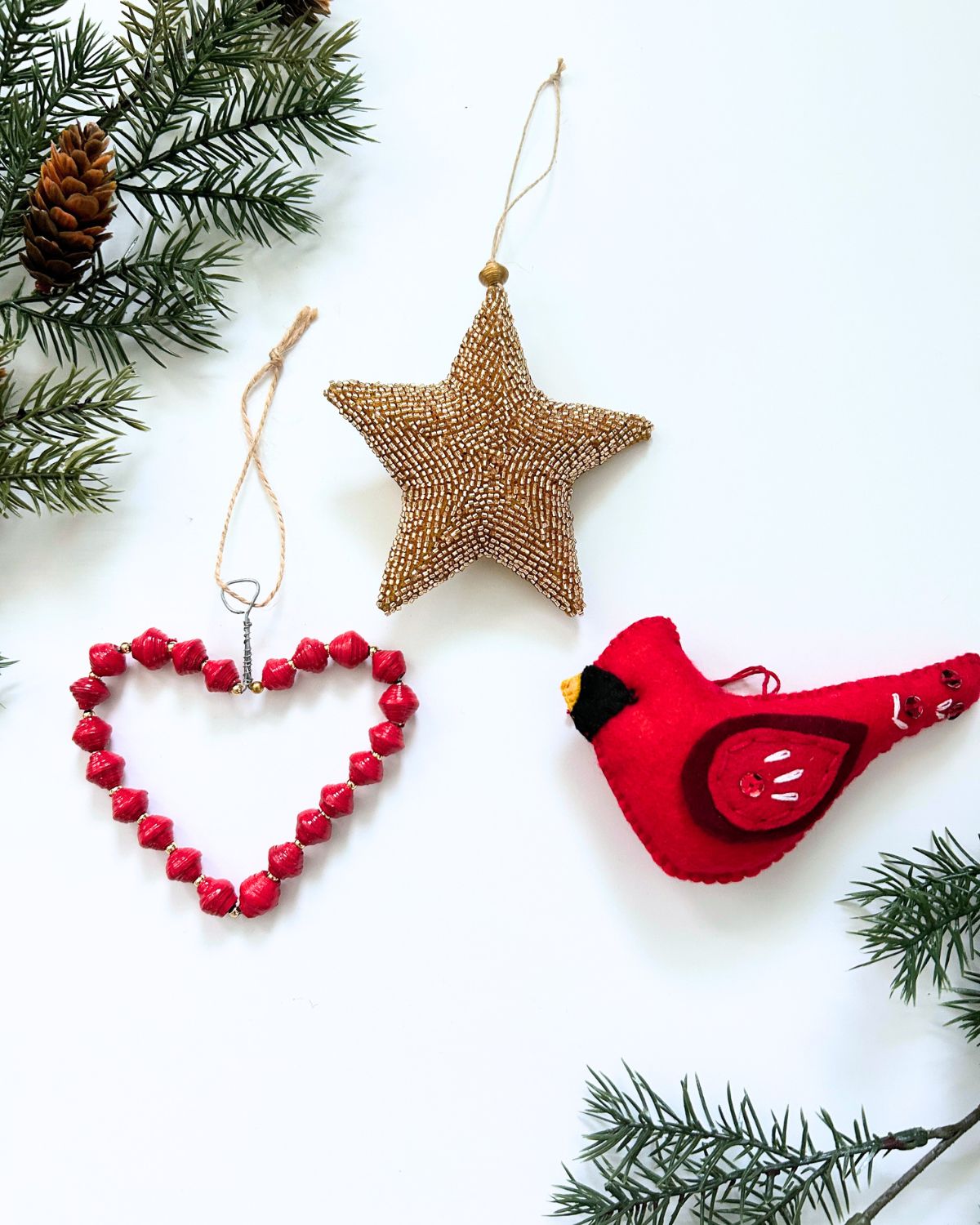 Meticulously crafted by skilled Vi Bella artisans in Haiti, this Cardinal Ornament brings vibrant elegance to your holiday décor. The striking red plumage and precise detailing showcase exceptional artisanship while supporting sustainable employment opportunities. A meaningful addition that combines artistic excellence with purpose for your seasonal display.