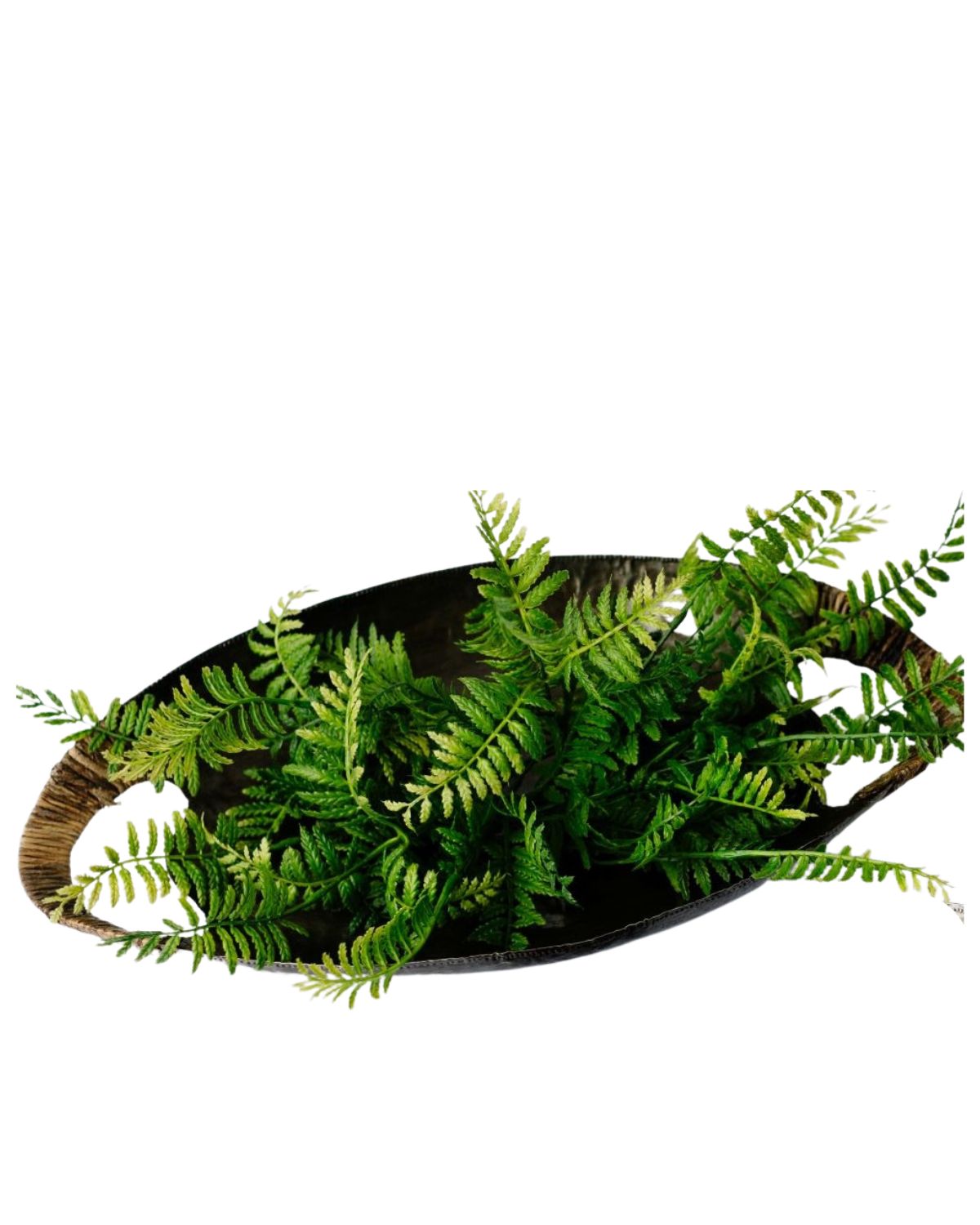 This metal bowl is crafted from recycled steel drums by Haitian artisans, highlighting sustainable practices. Its woven palm leaf handles add both style and functionality, making it durable and easy to use. Perfect for modern interiors, it works well as a centerpiece or practical container, combining traditional craftsmanship with contemporary design.