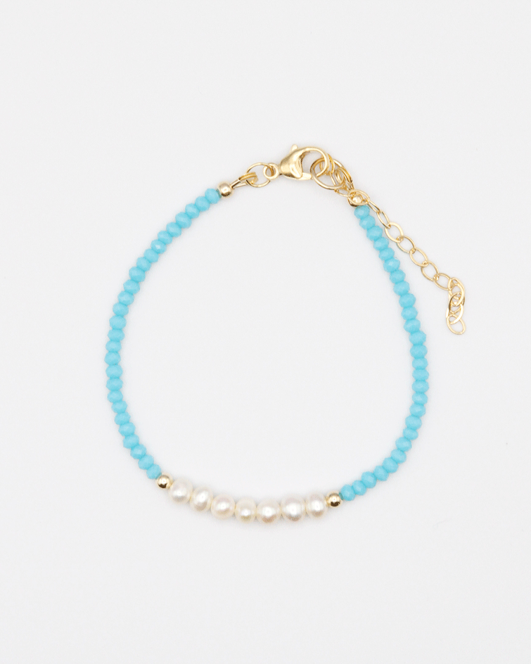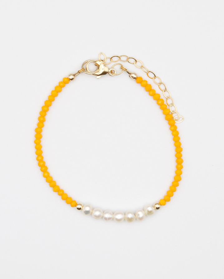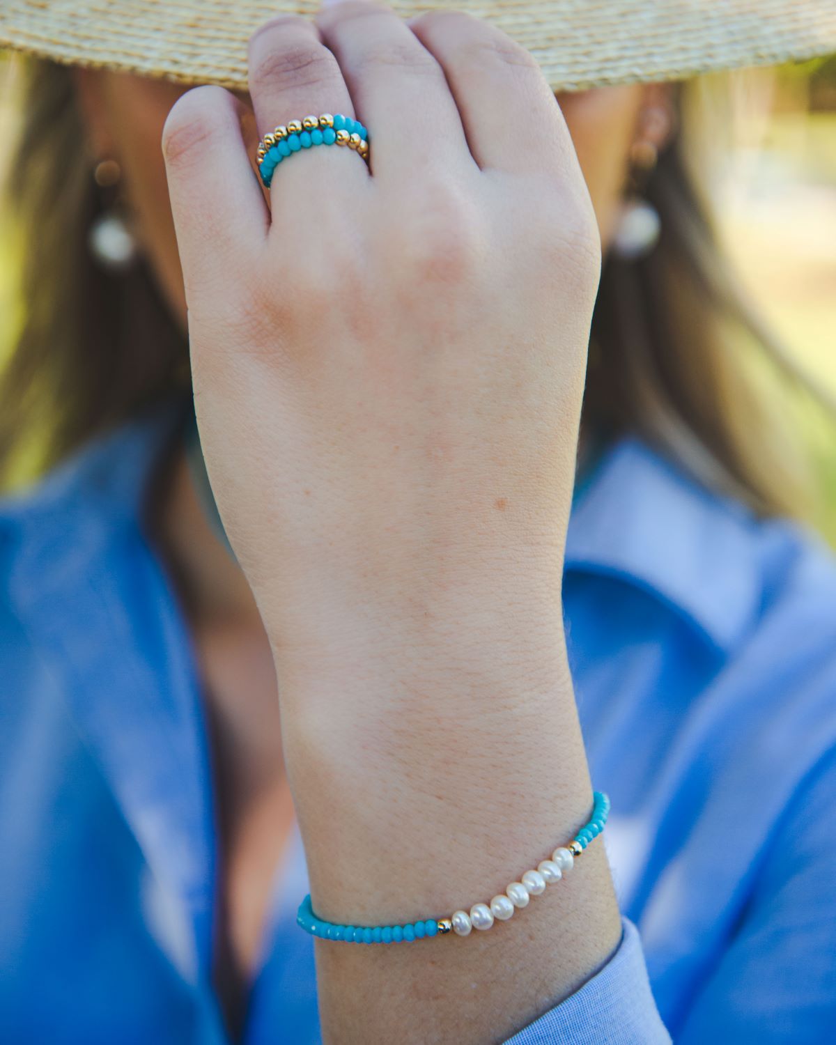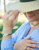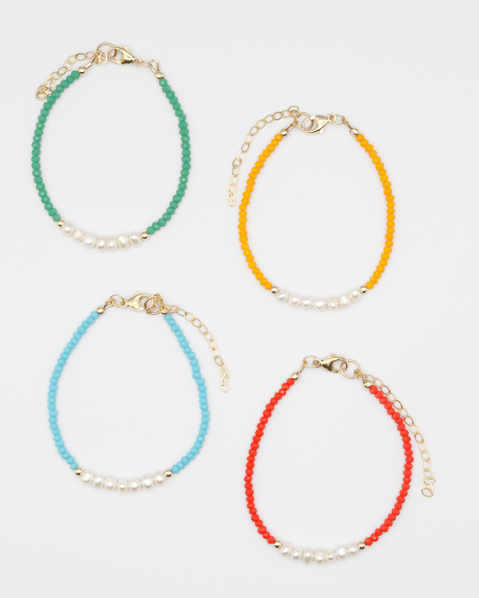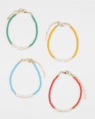 How fun are these? Our Arely Bracelet comes in four bright colors that look great alone or layered! We think you'll love the colorful glass crystal beads and the row of freshwater pearls flanked with gold beads for added detail. Try layering these bracelets with the Beatriz Bracelet Set and Arely Necklace and Rings. Talk about the perfect summer vibes!