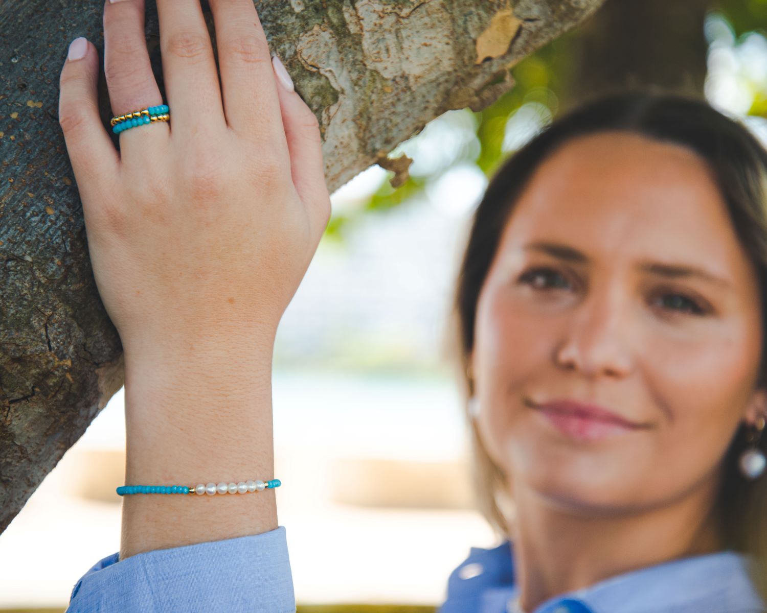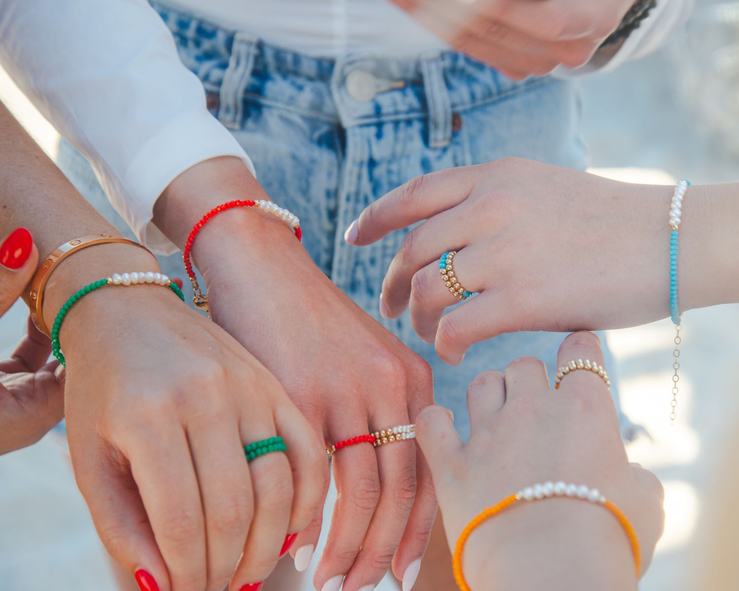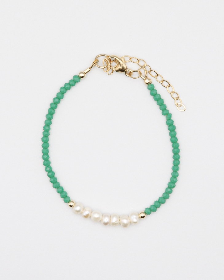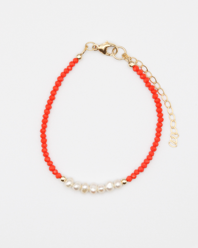 How fun are these? Our Arely Bracelet comes in four bright colors that look great alone or layered! We think you'll love the colorful glass crystal beads and the row of freshwater pearls flanked with gold beads for added detail. Try layering these bracelets with the Beatriz Bracelet Set and Arely Necklace and Rings. Talk about the perfect summer vibes!