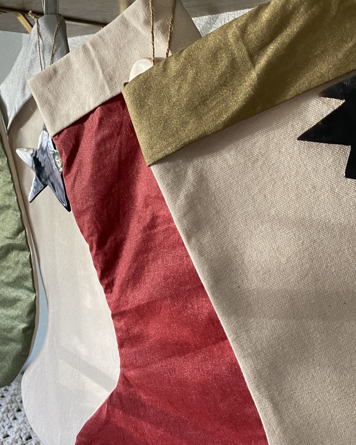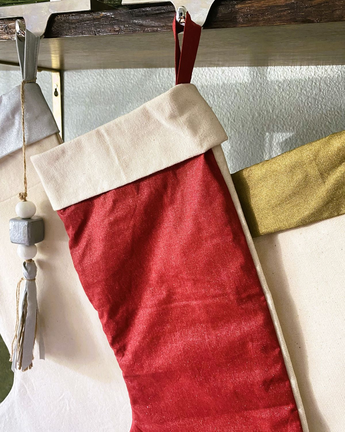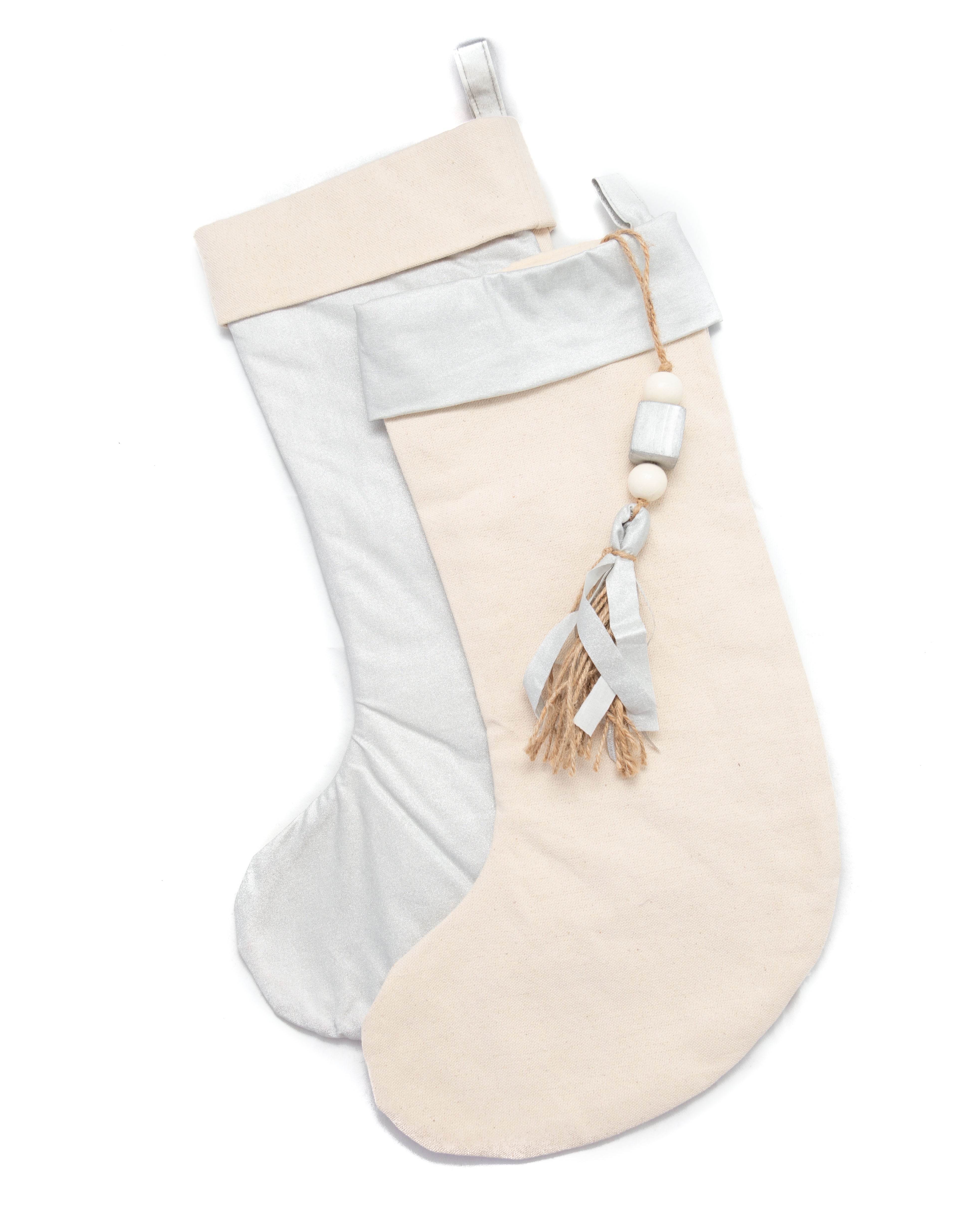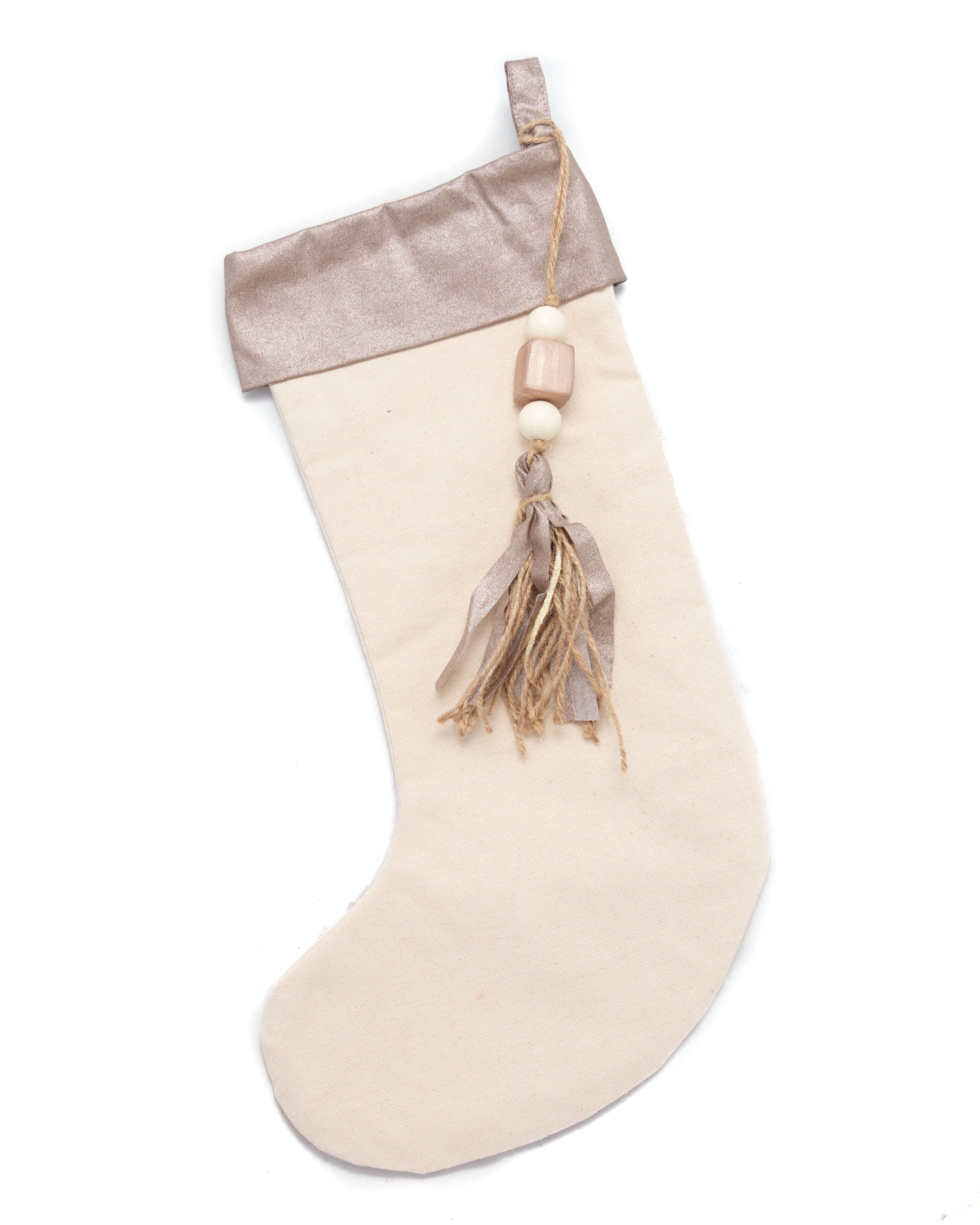 Absolutely gorgeous! The Metallic Stocking pairs natural fabric with a beautiful shimmery metallic fabric in your color of choice. Add on the Metallic Tassel Ornament for a gorgeous combination of natural twine and metallic fabric.