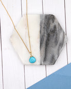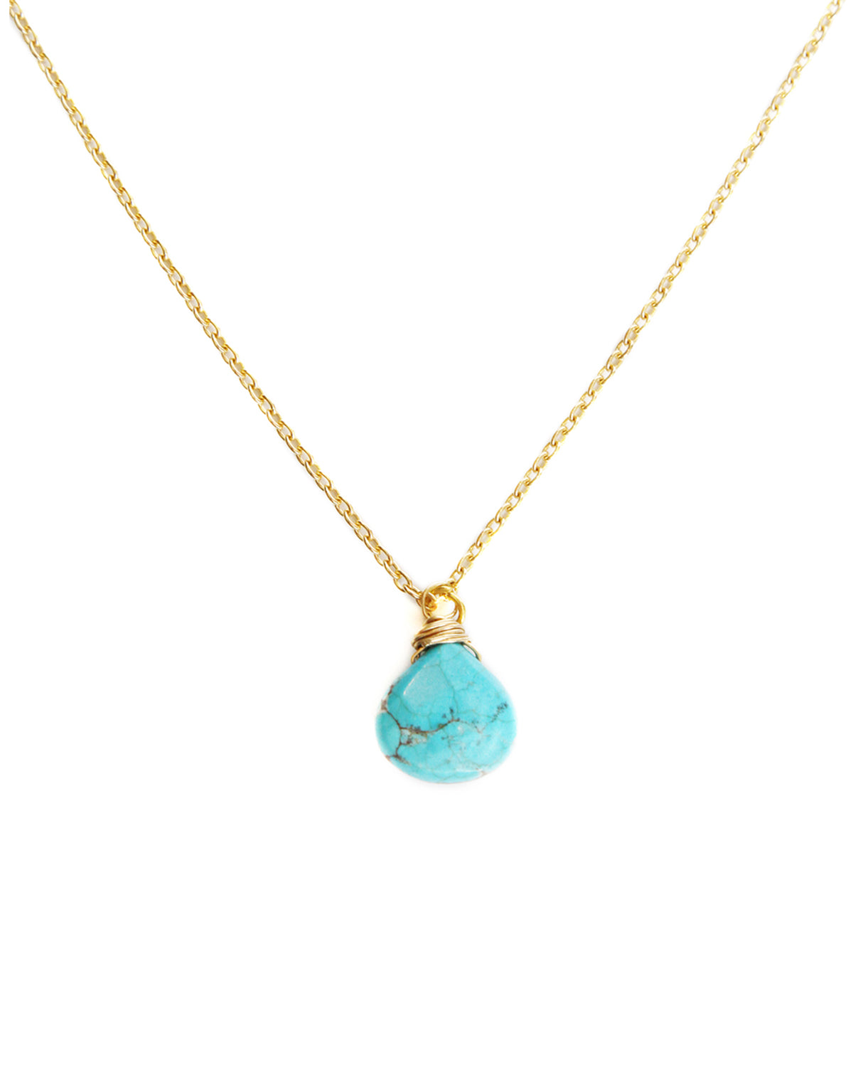 Details: 25-30in brass gold plated chain, turquoise howlite drop