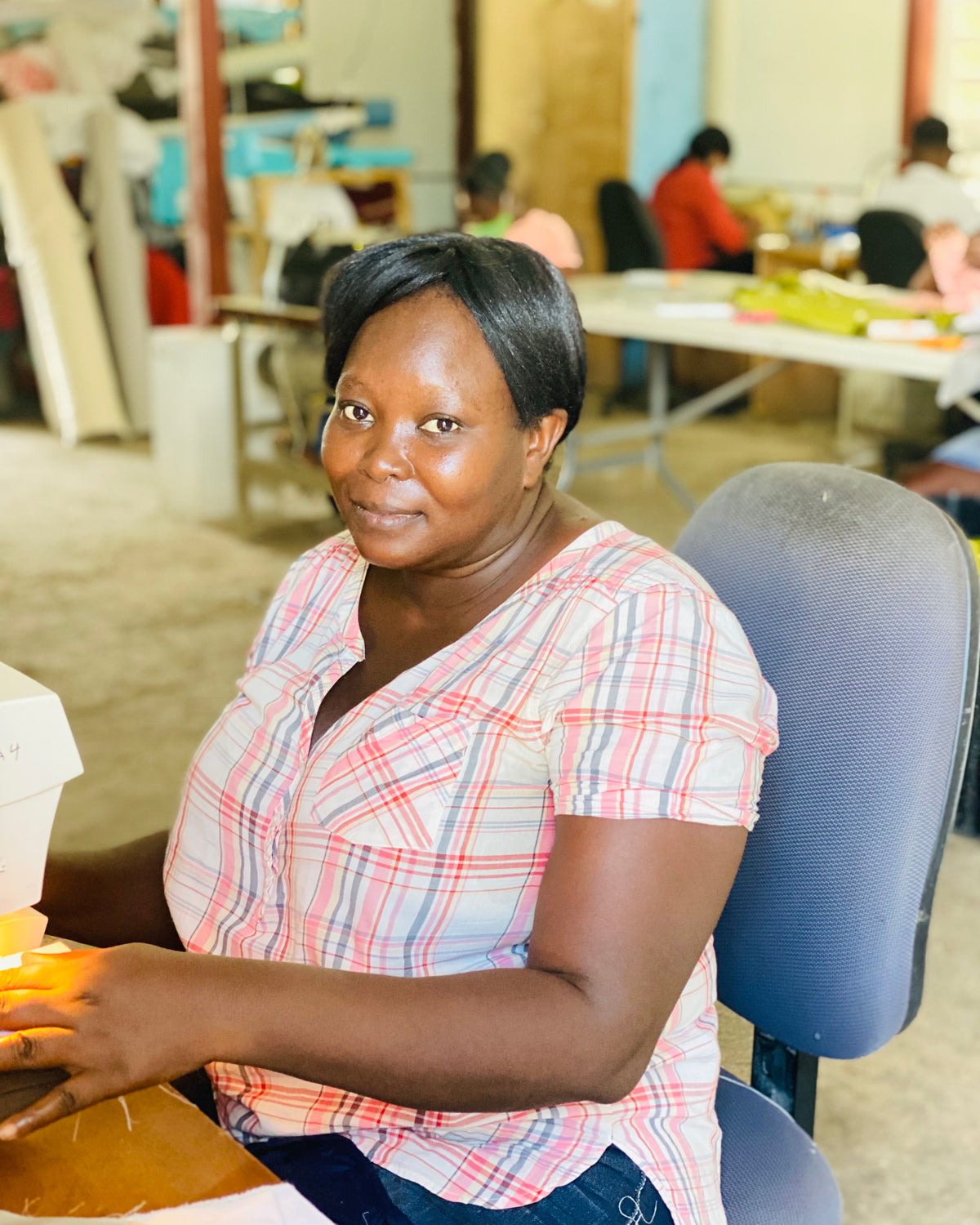 Natacha works in our Port-Au-Prince location as a seamstress and has been with us since 2010. She had to have her leg amputated after the 2010 earthquake in Haiti and learned to sew when staying at Mission Of Hope after receiving a prosthetic leg. She was offered a job there and became a Vi Bella employee when Vi Bella took over operations of the Mission of Hope/Three Cords team in 2017. Natacha says, "This work has helped me a lot with my family. It has helped me to take care of myself, my kids, and take care of their education and more."