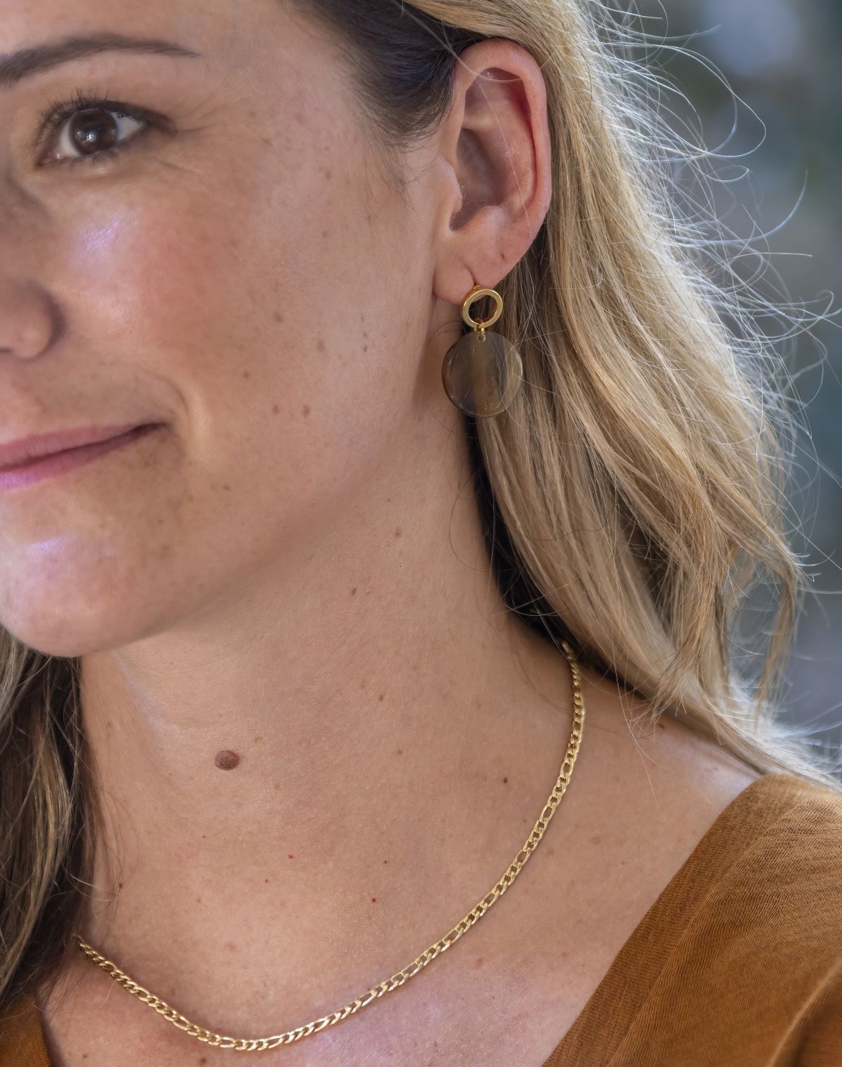 Combining upcycled cow horn and a dainty hoop on a stud, the Nichole Earrings are a smaller pair of earrings that pack a stylistic punch.