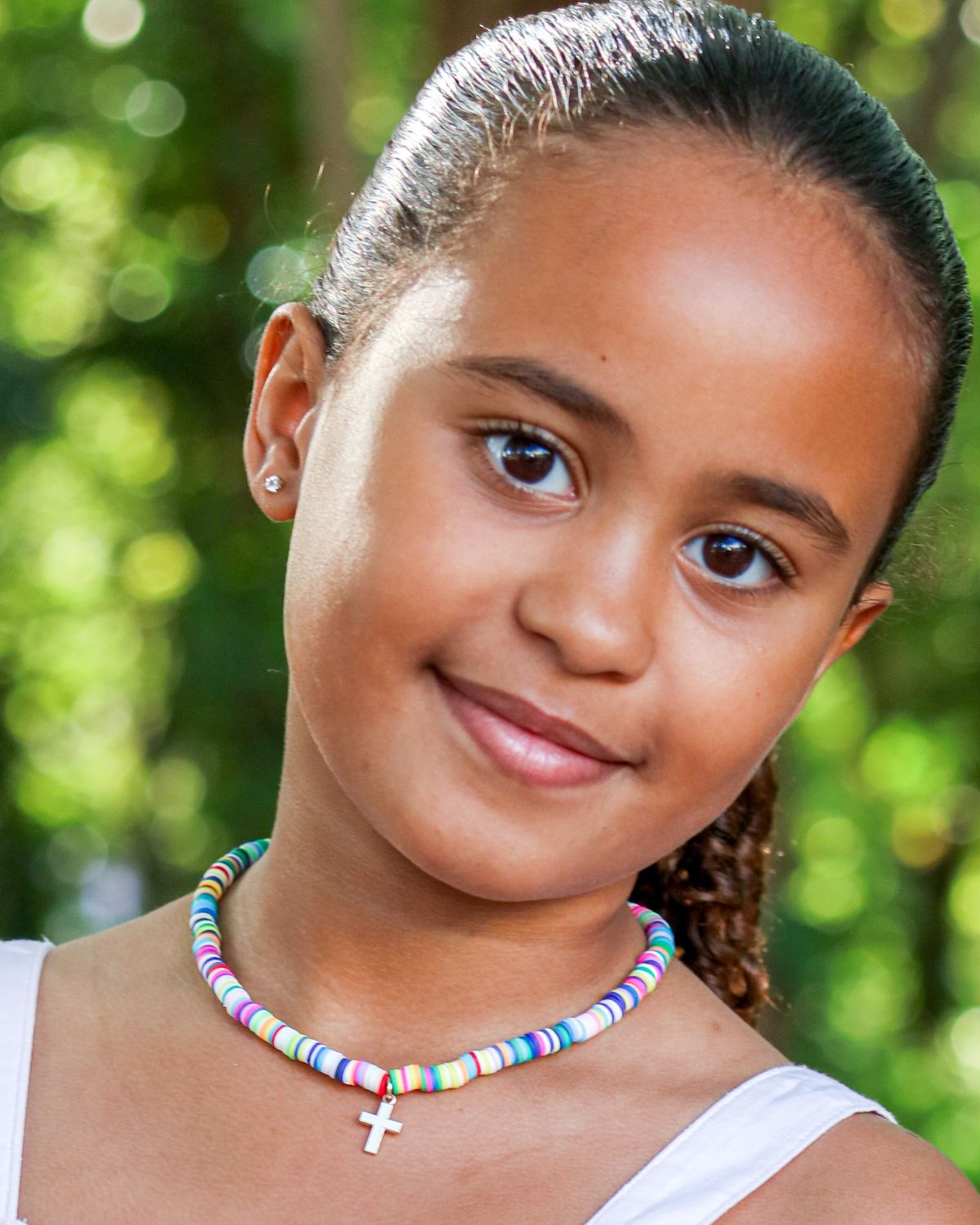 Add a pop of fun style to your little one's wardrobe with the Ava Necklace! This kids clay bead necklace features a charming white cross charm and multi-colored beads for a playful touch. Perfect for adding a colorful accent to any outfit and sharing their faith in a stylish way!