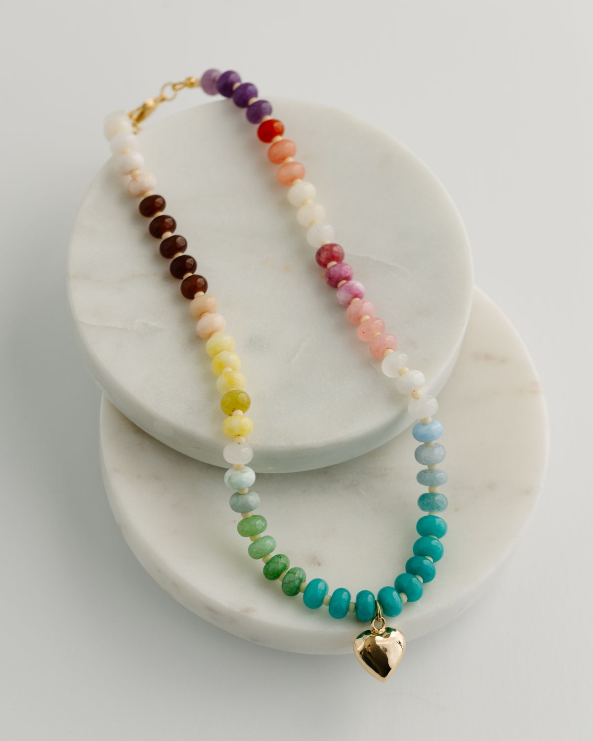 Take your spring and summer style to the next level with the Rosalie Necklace—a true showstopper crafted by Vi Bella artisans in Haiti. This limited edition piece features vibrant multicolor jade beads strung on a 16-18 inch adjustable length, anchored by a delicate gold-filled heart charm. Each handmade necklace celebrates artisanal craftsmanship and brings effortless on-trend style to any outfit.