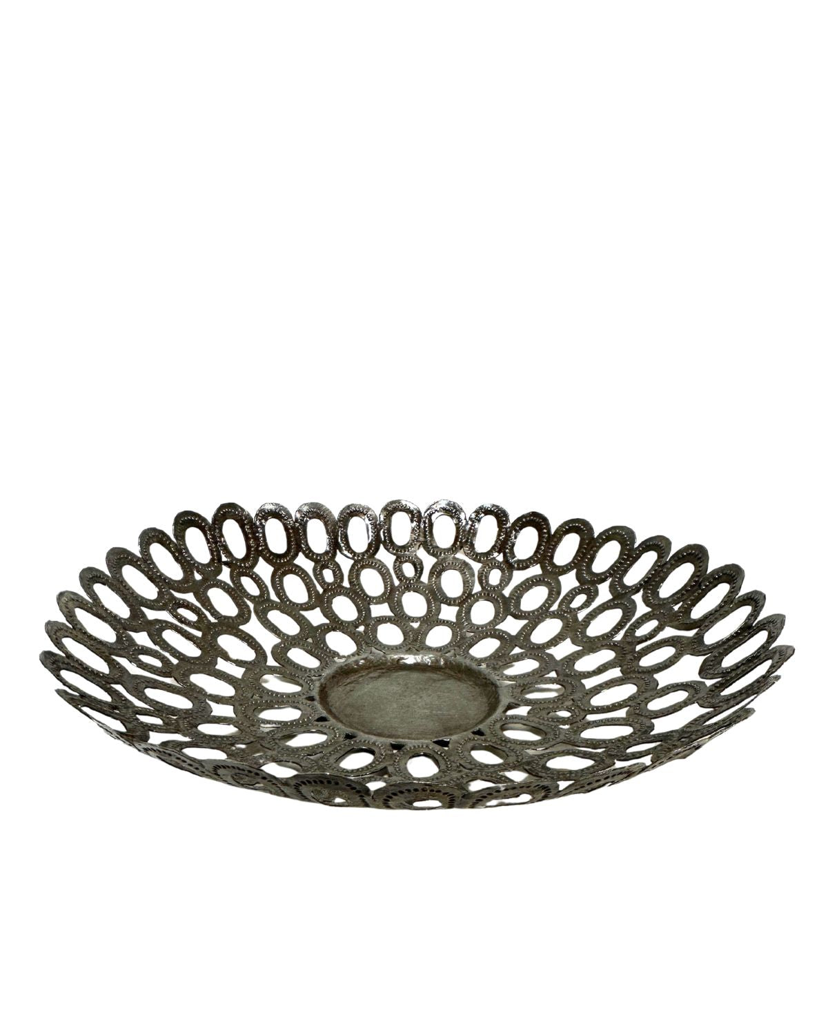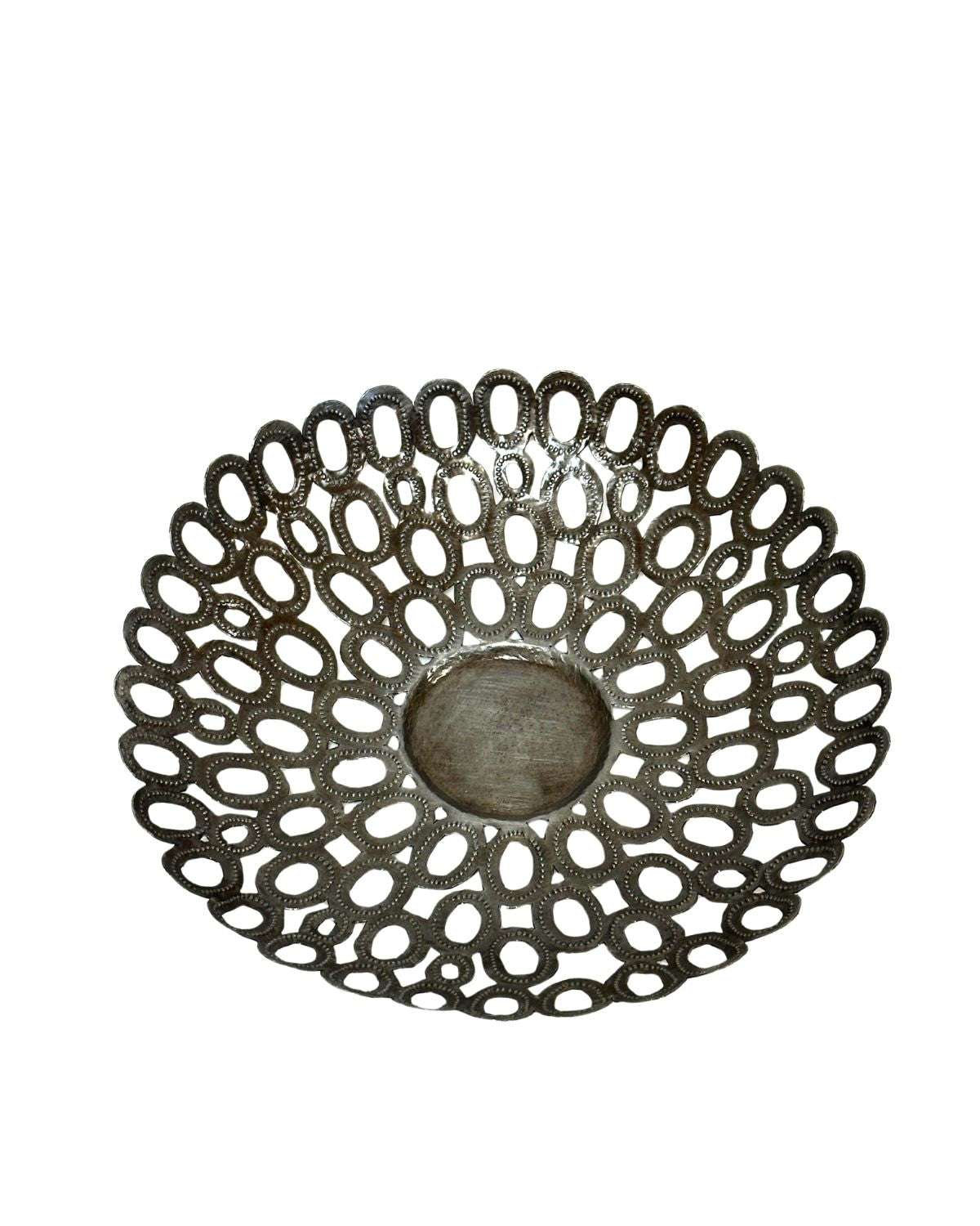 Designed by Haitian metal artisan, Jacques, this decorative bowl is filled with detail and all done by hand! The Metal Circle Bowl is made from discarded steel oil drums, turning trash into a work of art. The story behind this piece is extraordinary. When you purchase metal art from Vi Bella, you are helping keep traditional Haitian metalsmithing alive and providing support for these hardworking individuals and their families. Thank you!