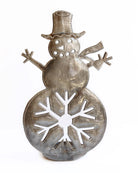 Light a candle on the attached tray and watch the light flicker through the body of the snowman! Festive? For sure! The substantial size of this snowman makes for a great stand-alone decor piece. Our metal art is made from recycled oil drums in Haiti, using materials that have been discarded and are readily available to create a beautiful piece of art.