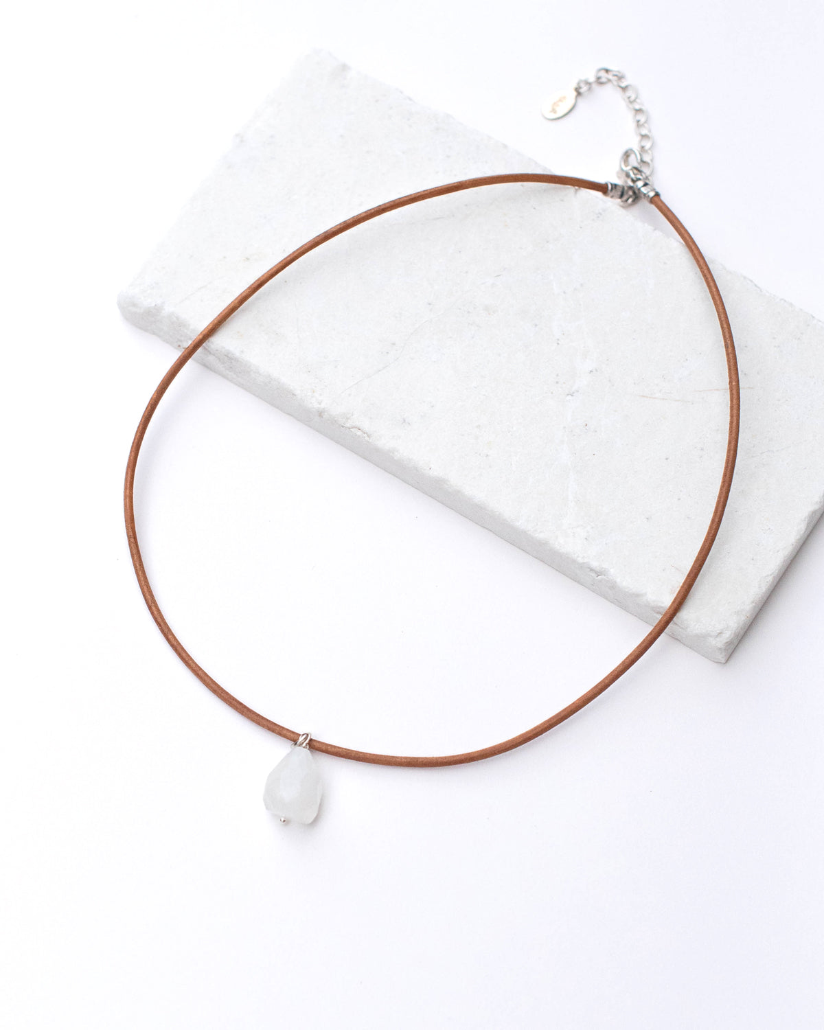 - Details: genuine rainbow moonstone, round leather cord, silver lobster clasp and chain