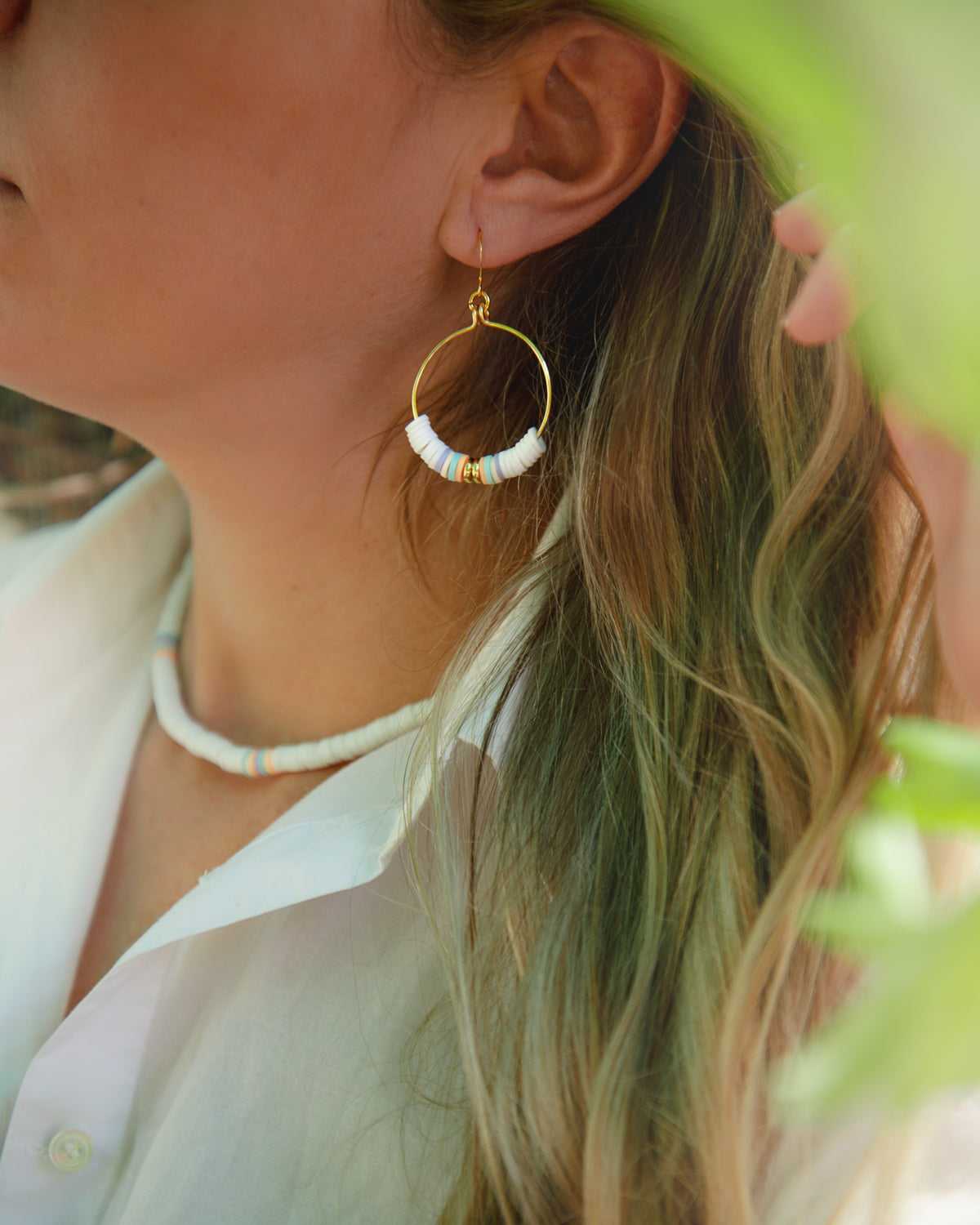 The Baranatha Necklace is beautiful and fun, with white polymer clay beads flanked with on-trend pastels. Add one of these to your jewelry collection and we think you'll be surprised at how many outfits you pair this beauty with! Pair it with the Sandra Necklace and/or other pieces of the Baranatha Collection.