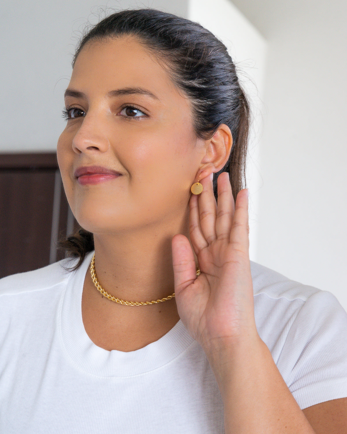 The perfect pair of earrings for every ear! The Bengy Earrings are dainty and super lightweight, with plenty of sparkle from the hammered brass. These are a perfect starter pair of dangle earrings - great for tweens, teens...really, anyone with pierced ears! Choose from silver or gold plated, or don't choose at all!